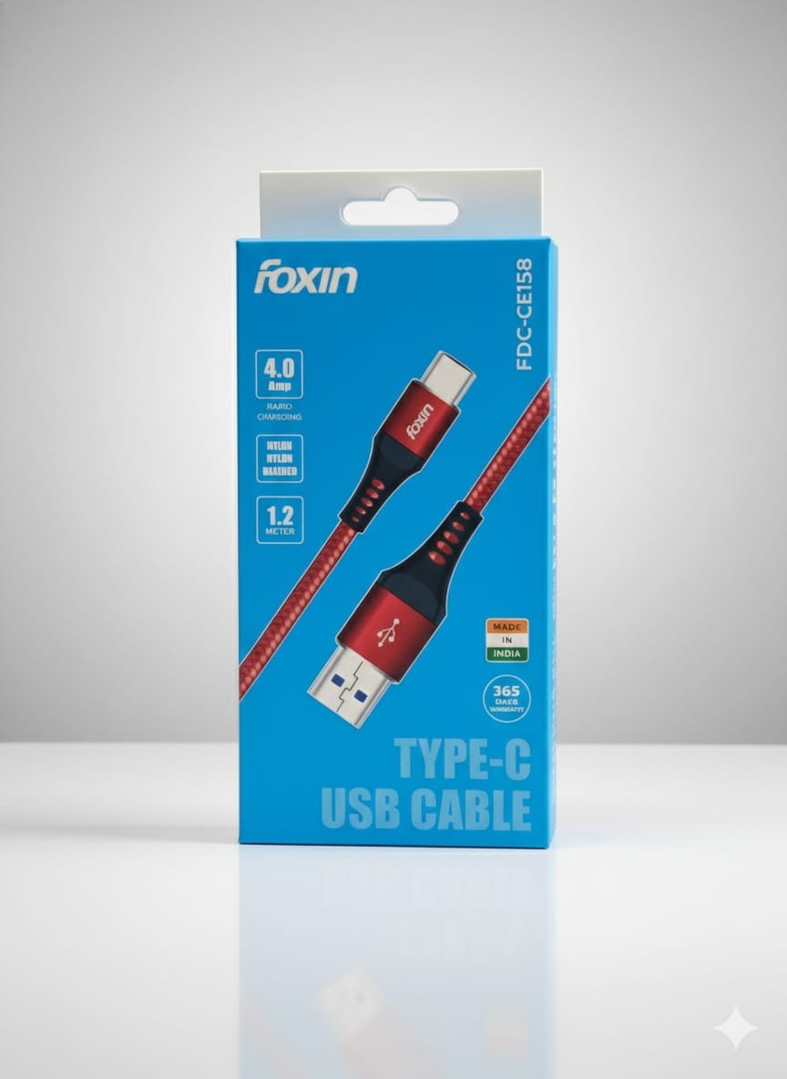 Proudly Made in India, the Foxin Type-C Cable comes with 365 days of warranty, making it a reliable and value-for-money choice.