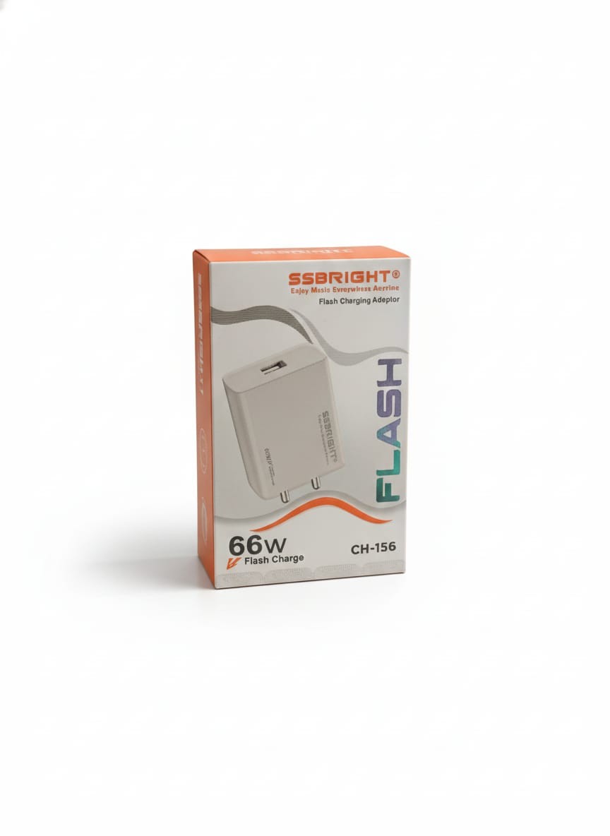 SSBRIGHT 66W Flash Charger CH-156 is designed for ultra-fast and safe charging. Equipped with a powerful 66W flash-charge output, this adapter ensures rapid power delivery for smartphones, tablets, and other USB-powered devices. The compact and durable design makes it ideal for travel and daily use. Comes with a high-quality charging cable for stable and reliable performance.