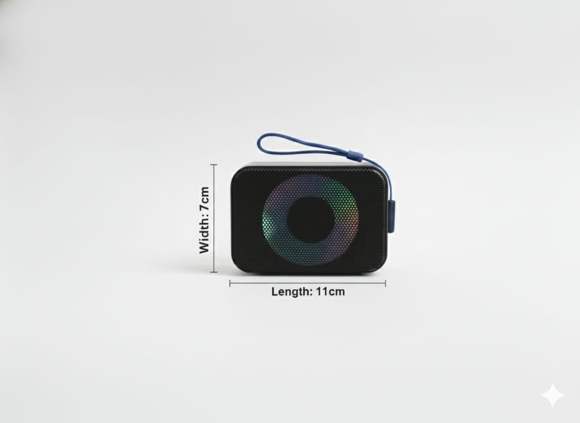 It supports USB flash drive, Micro SD (TF card) and multiple audio formats including MP3, WAV, FLAC, ensuring versatile playback options. With a 1200mAh rechargeable battery, this compact speaker is ideal for home, travel, parties, and outdoor use.
